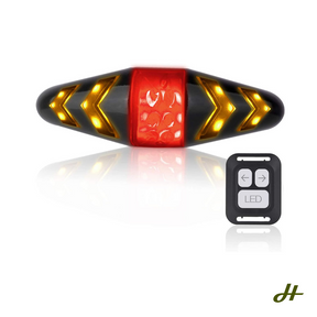 WIRELESS REMOTE CONTROL: Four mode remote control: turn left light, turn right light, red led warning light and SOS. Remote control on handlebar, easy to control while riding.